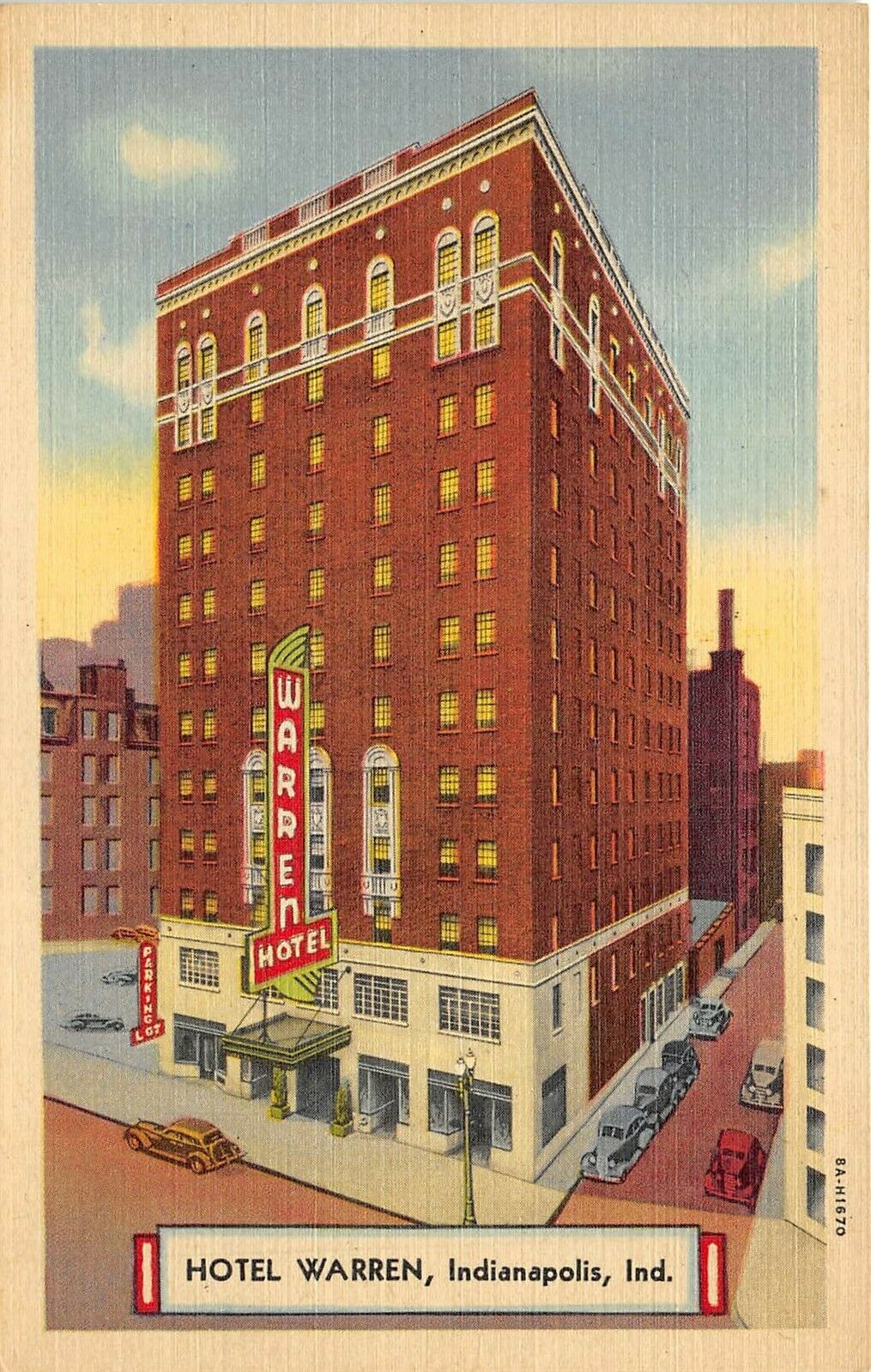 Indianapolis Indiana 1940s Postcard Hotel Warren