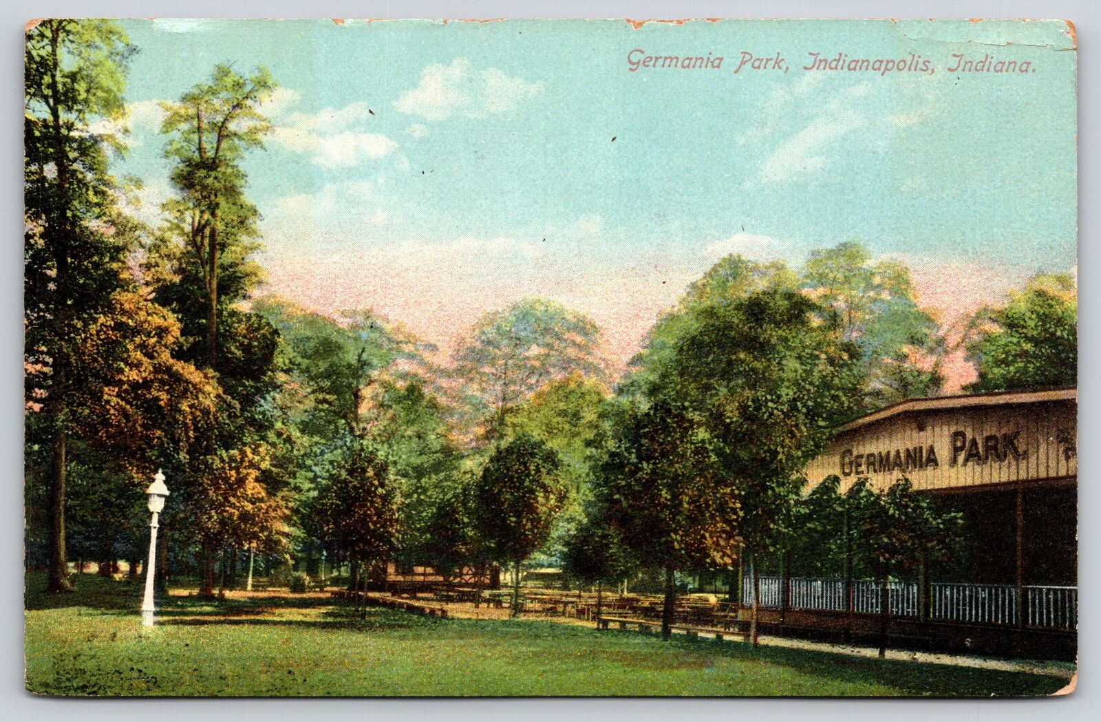 Indianapolis Indiana~Germania Park~Pavilion Shelter~Lamp~Sign~c1910 Postcard