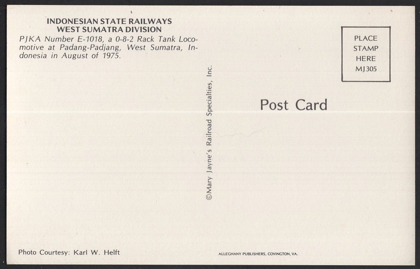 Indonesian State Railways West Sumatra Division PJKA Number E-1018 1975 ~ Chrome