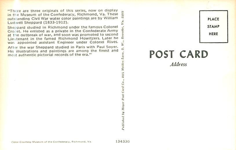 Infantryman Civil War Postcard Postcard, Grade: 1 Size: Regular Size Postcard - approximately 3 1/2 inch x 5 1/2 inch (9 CM x 14 CM) Grading Scale: Grade 1 = Perfect corners Grade 2 = Very Minimal corner wear, ... Read More