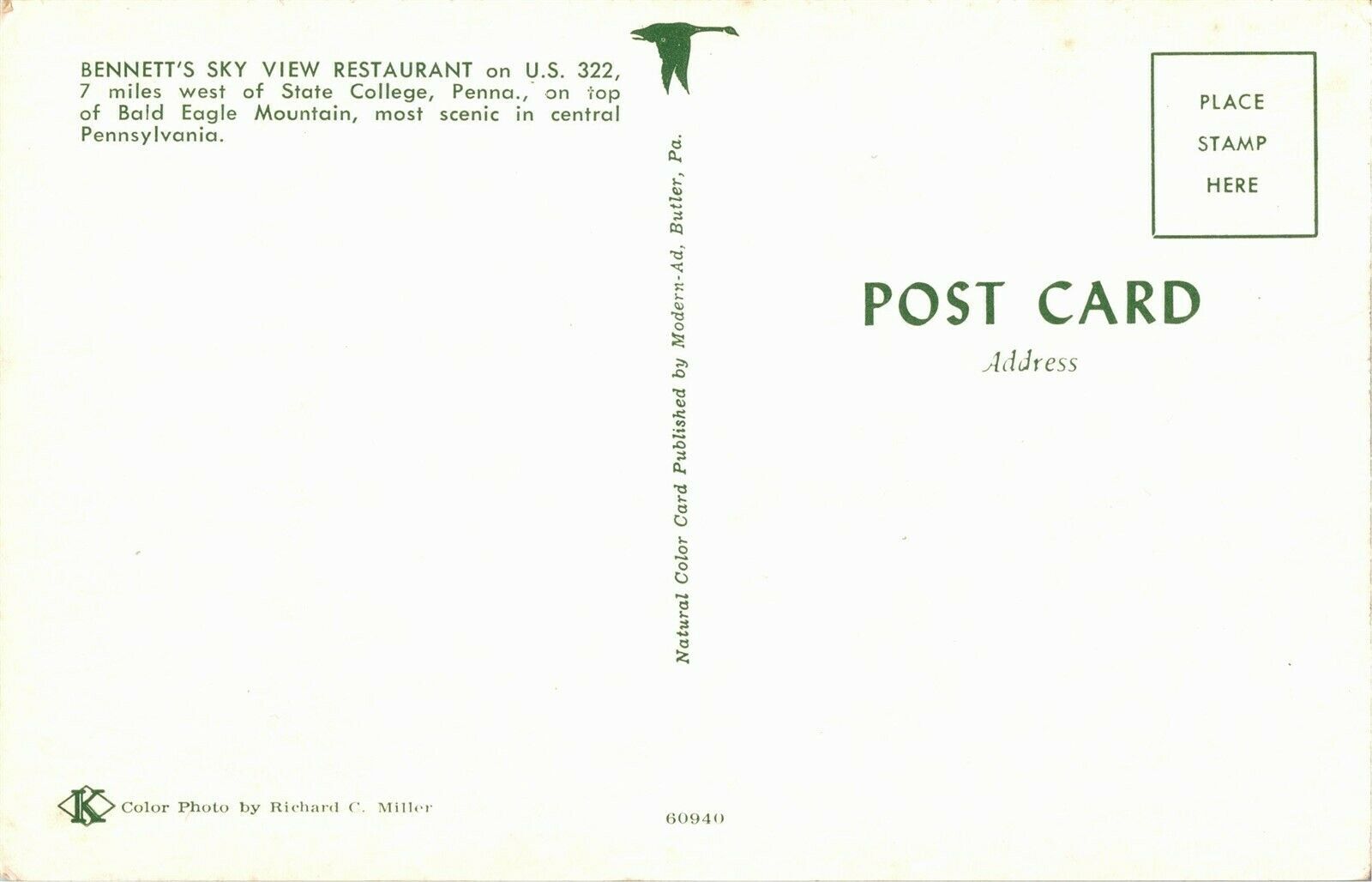 Interior Bennett's Sky View Restaurant Bald Eagle MT PA Vintage Postcard R36
