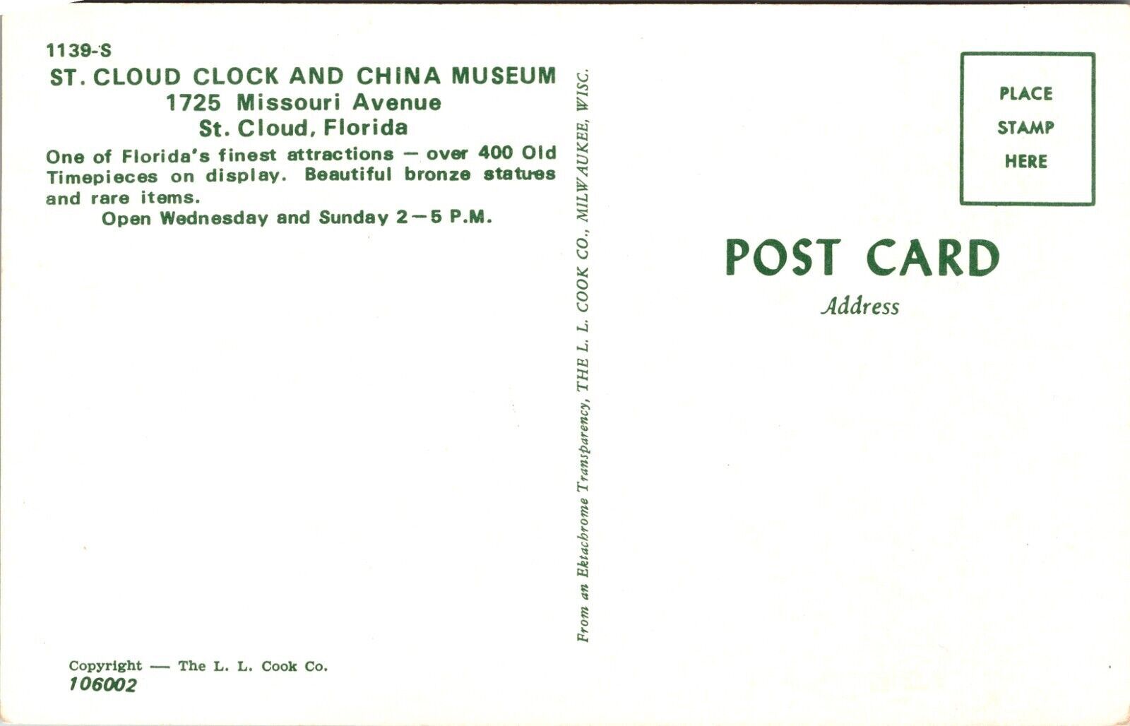 Interior Display View Clock & China Museum St Cloud Florida PostcardWe have many more wonderful and unique postcards, along with other paper ephemera. Take a look at our store to see more treasures. Take advantage of our specials and add items to your wishlist and you may get a special offer! are packaged in a plastic sleeve and mailed in a cardboard or thick paper mailer. ----------------We do have a dog who sometimes contributes a hair or two to the cause. But he generally does not collect postcards and is looking for love in all the right places.