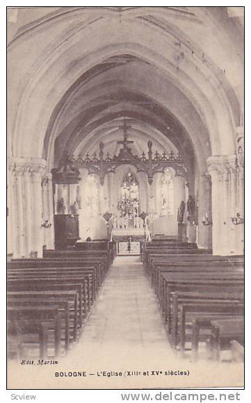 Interior, L'Eglise, Bologne (Emilia-Romagna), Italy, 1900-1910s :: Antique (Vintage) Original Postcard, Size (3.5" by 5.5"), Litho, EX.
