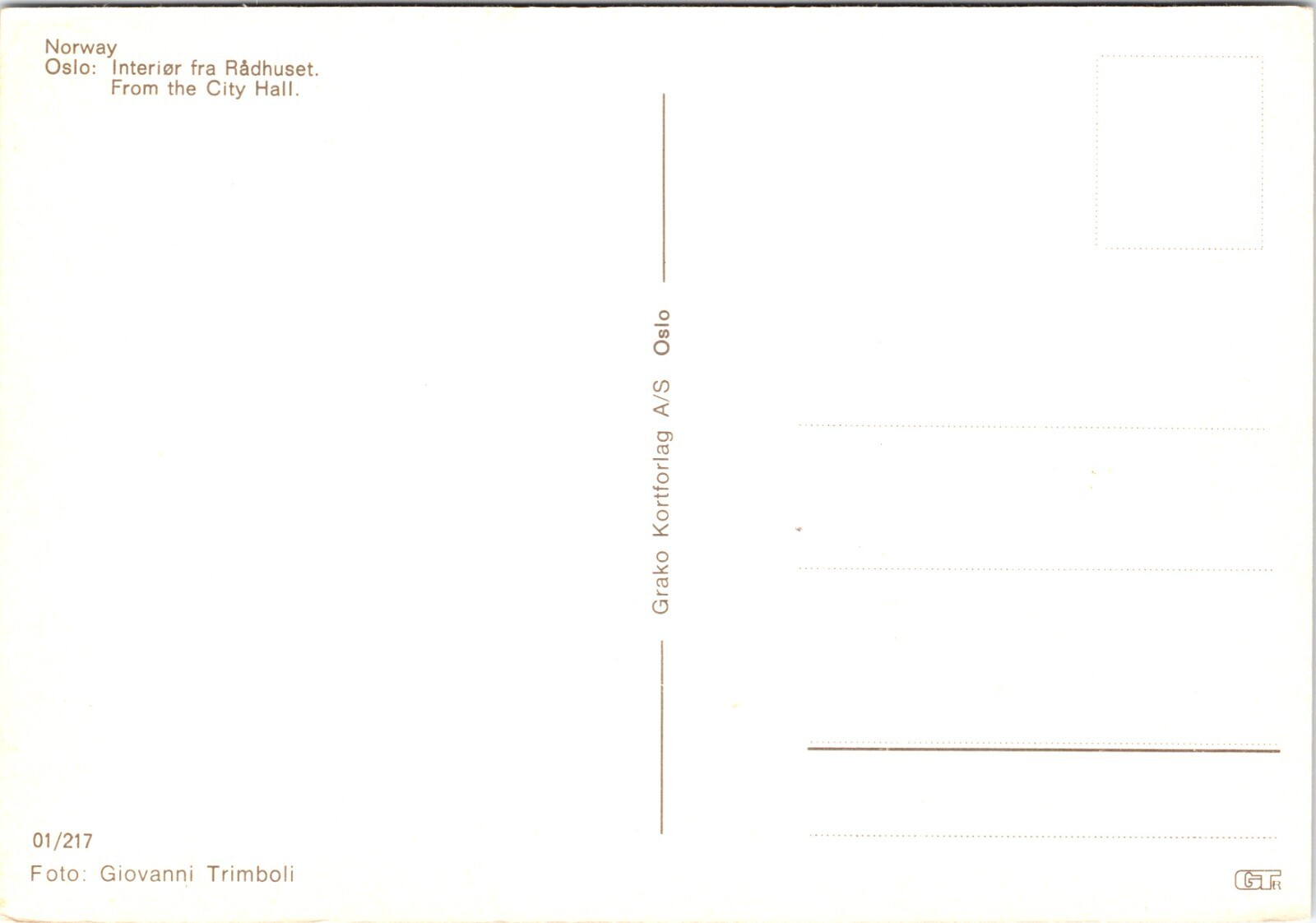 Interior Radhuset City Hall Oslo Norway POSTCARD