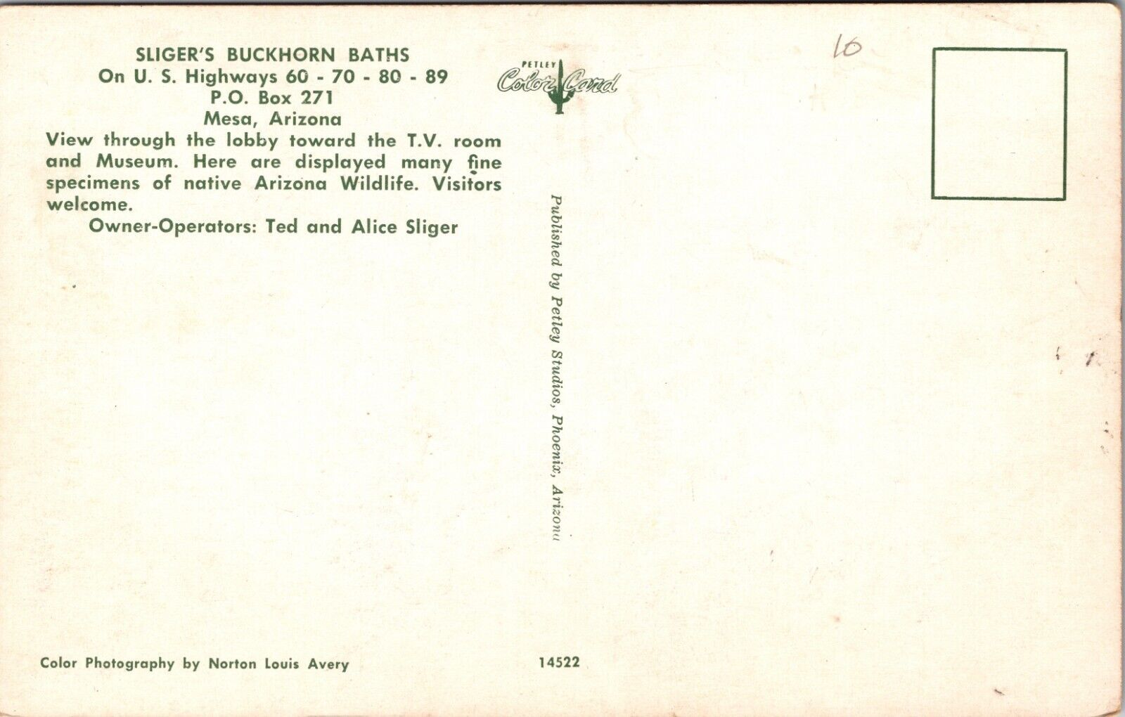 Interior Sliger's Buckhorn Baths Mesa, Arizona Postcard