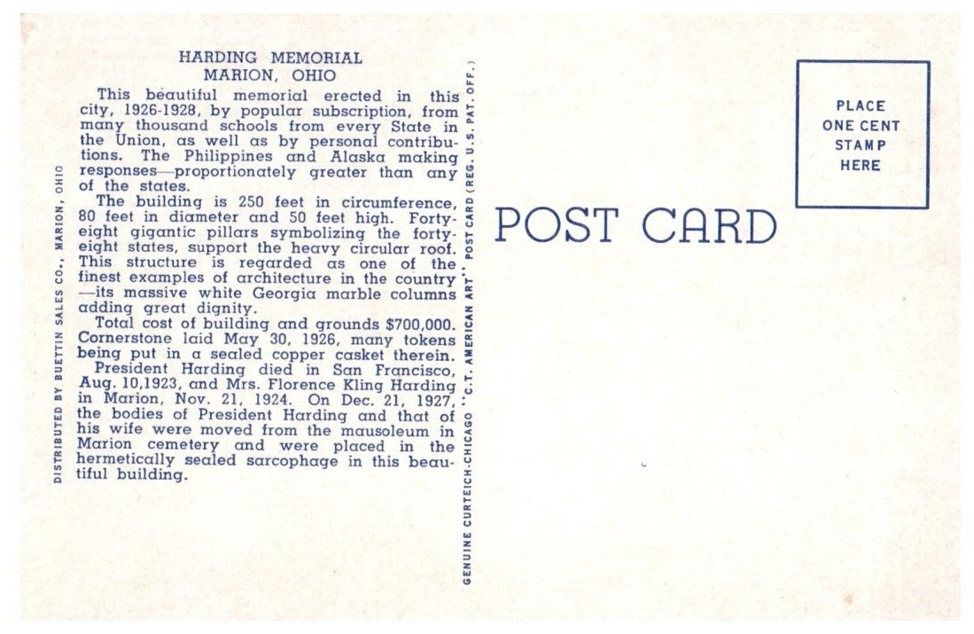 Condition: Pre-owned. Stored well. May have mild edgewear. Typical. Interior Warren G Harding Memorial Marion Ohio Postcard