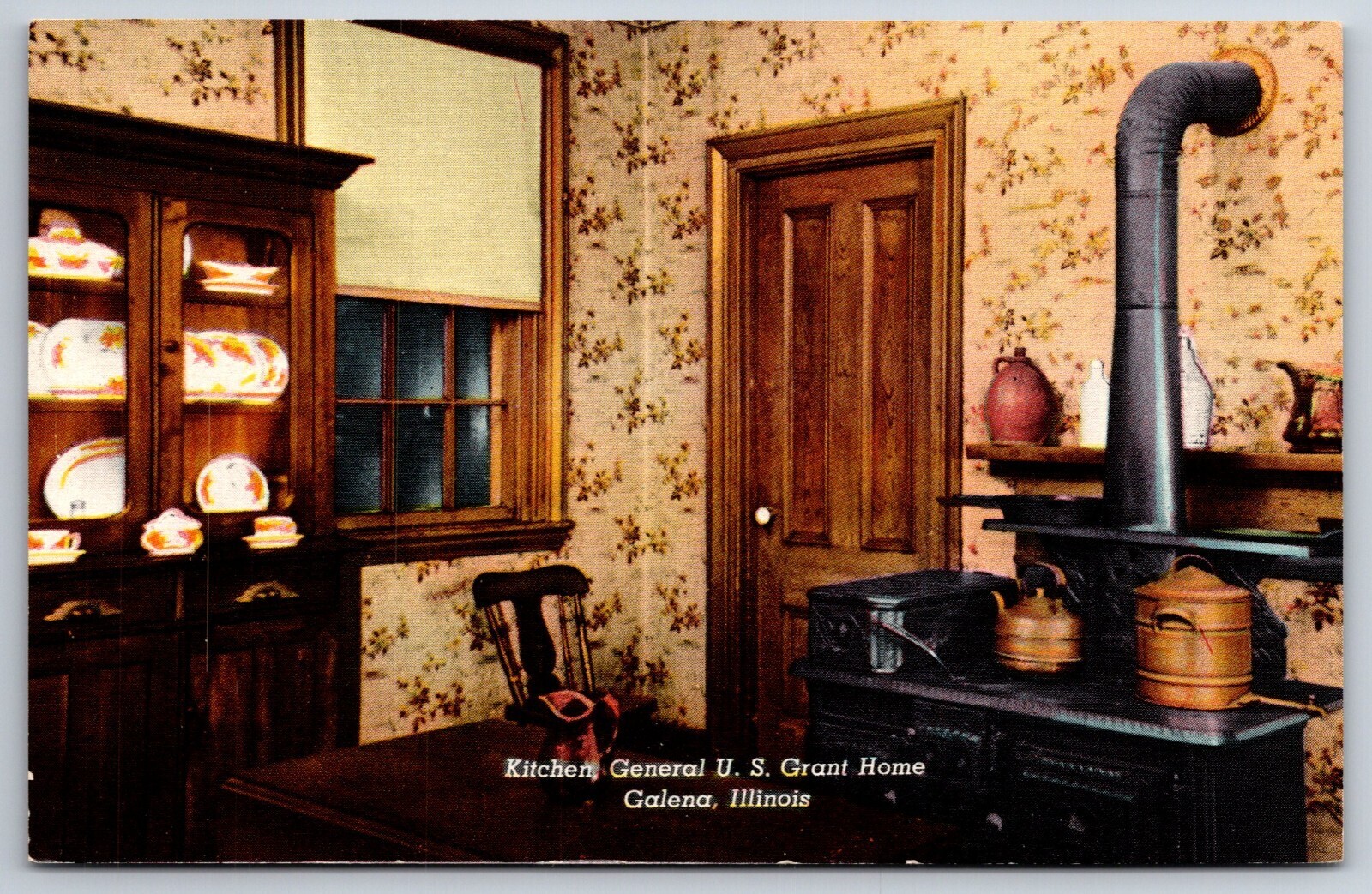 Interior~Kitchen General US Grant Home Galena Illinois~Vintage Postcard