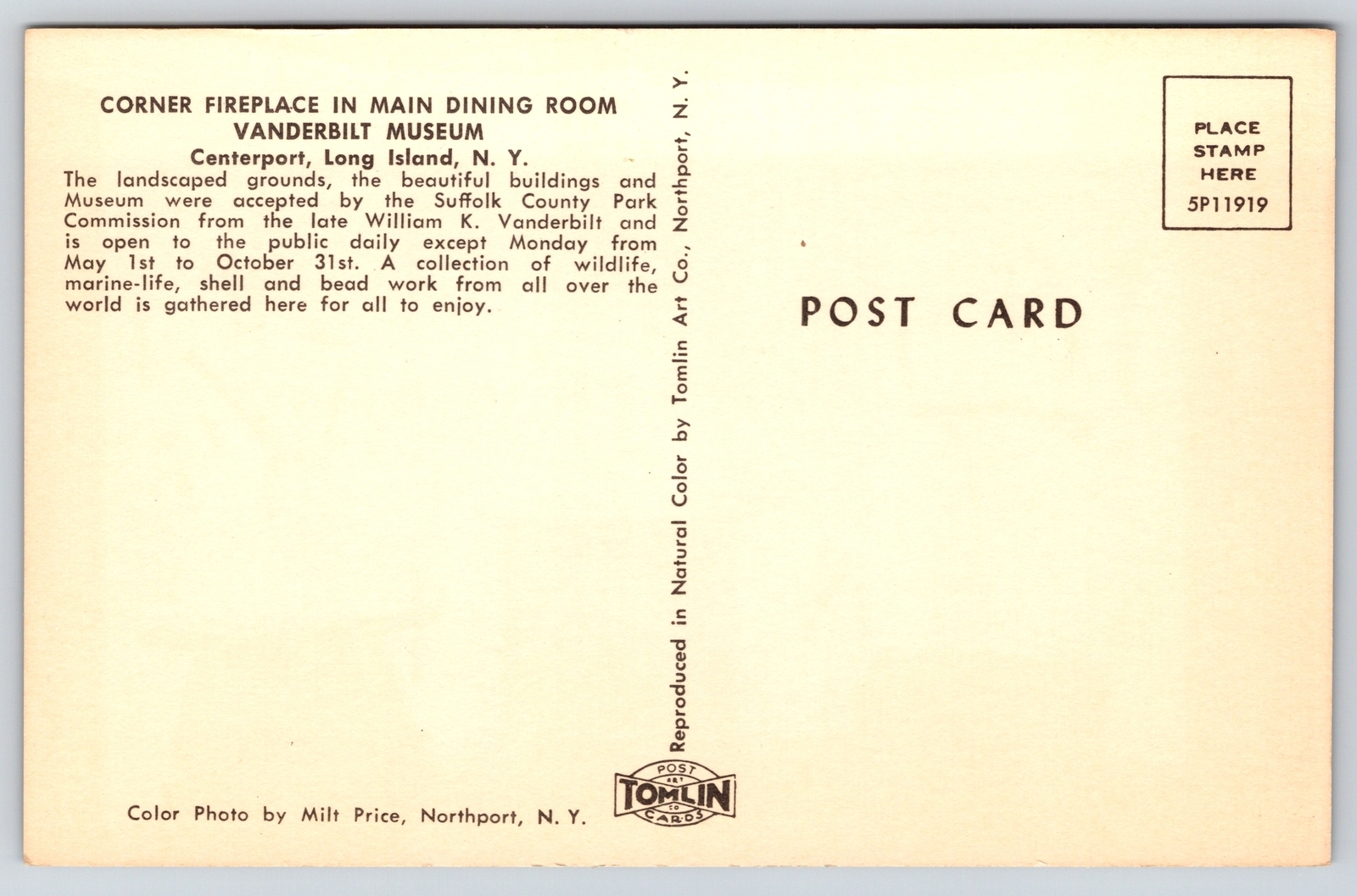 Interior~New York~Corner Fireplace In Dining Room @ Vanderbilt Museum~Vintage PC