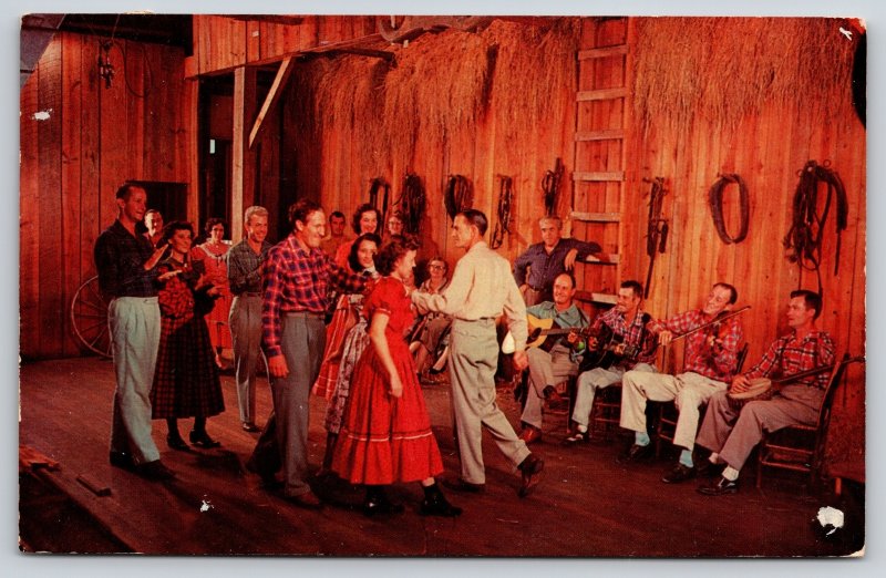 Interior~Old Time Square Dancing @ Renfro Valley Kentucky Barn~Vintage Postcard