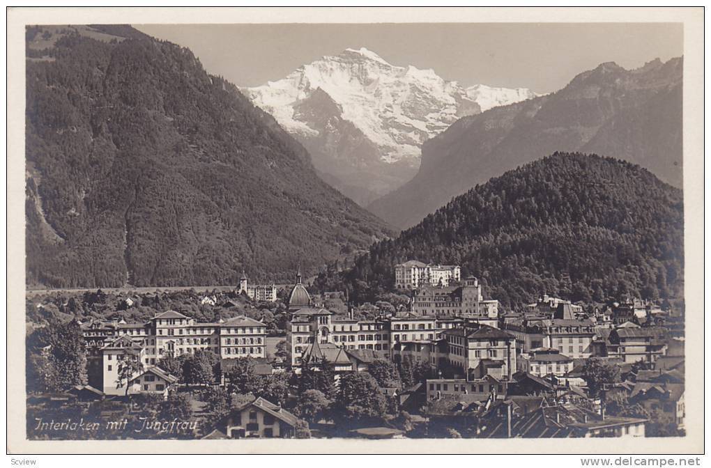 Interlaken Mit Jungfrau, Berne, Switzerland, 1920-1940s :: Antique (Vintage) Original Postcard, Size 3.5" by 5.5", Real Photo, EX.