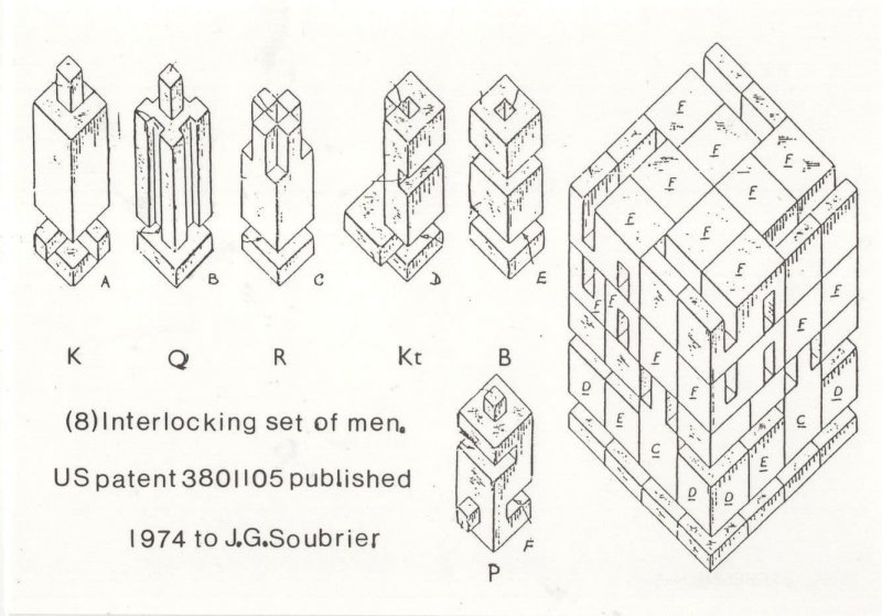 zx501 A truly unique undated but appears circa 30 years ago origin collectors postcard of this unique set of Interlocking Chessmen dated from the 1970s unused and mint.