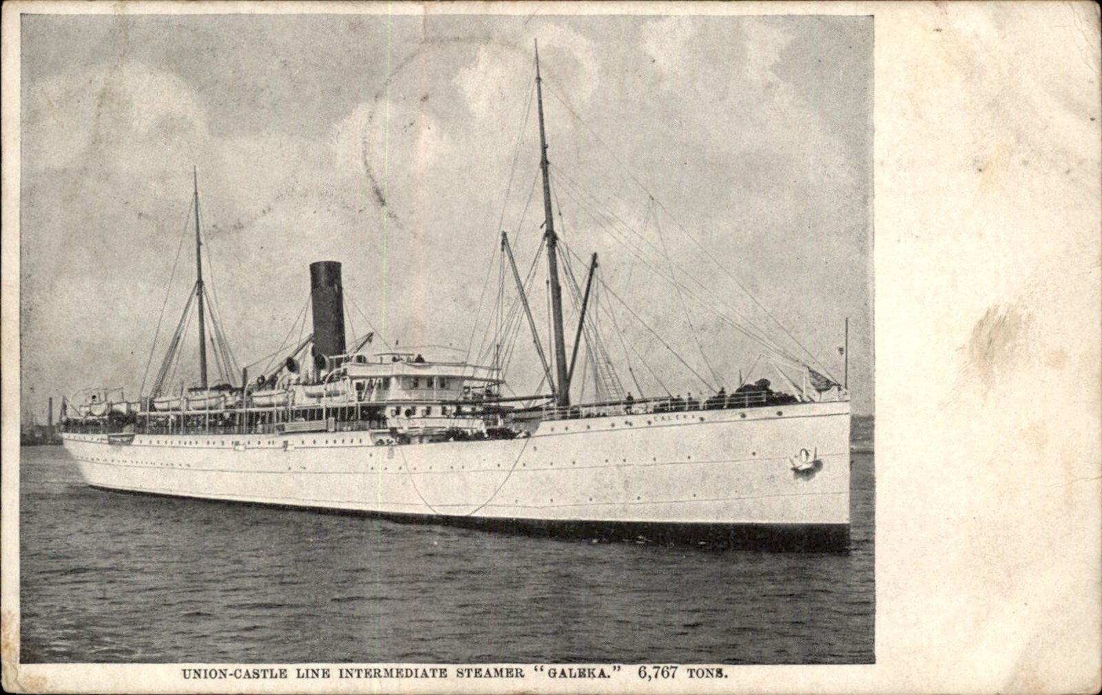 Intermediate Steamer Galeka Union Castle Line c1912 Vintage Postcard