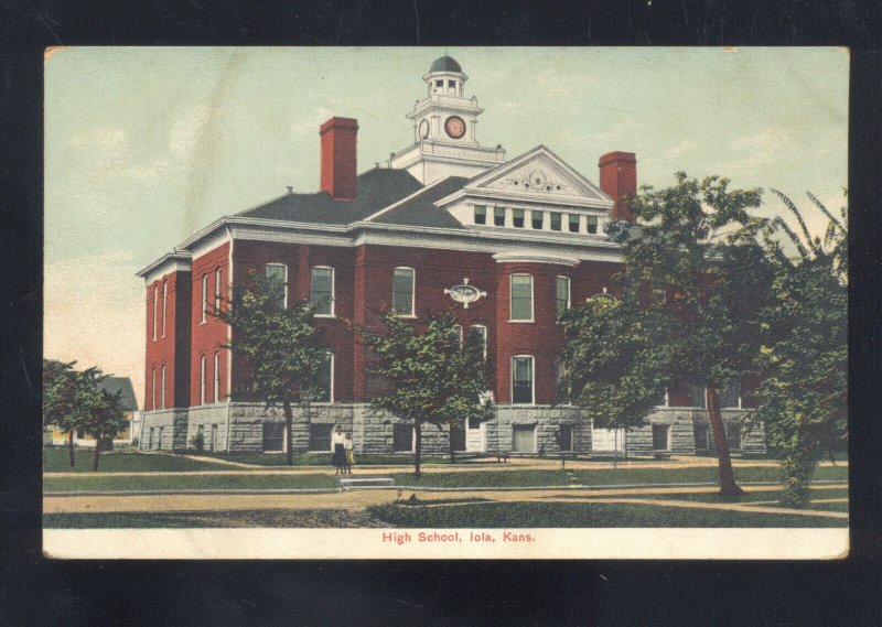 IOLA KANSAS HIGH SCHOOL BUILDING VINTAGE POSTCARD