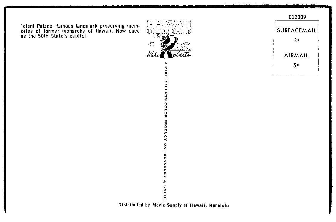 Iolani Palace Hawaii Postcard