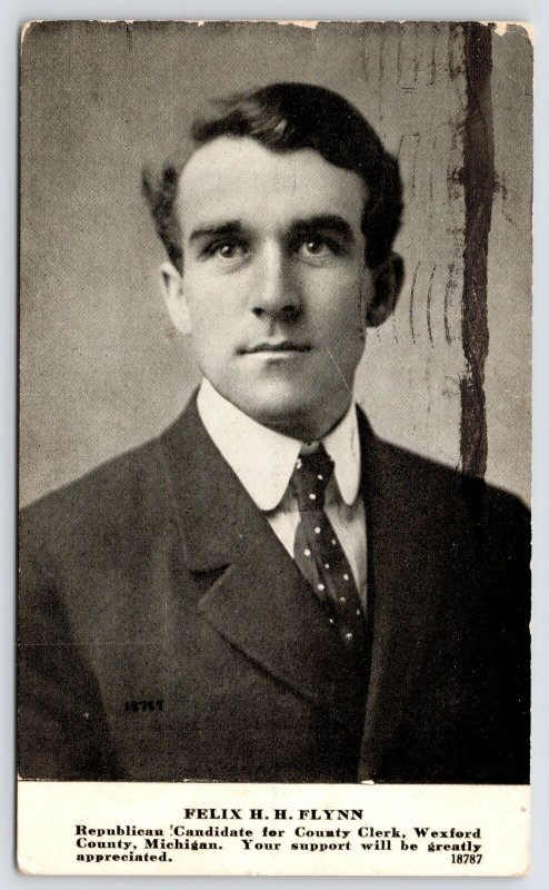 Ionia MI Native Felix Flynn~1914 Wexfod Co Clerk Ad~Cadlliac Mayor~State Senator