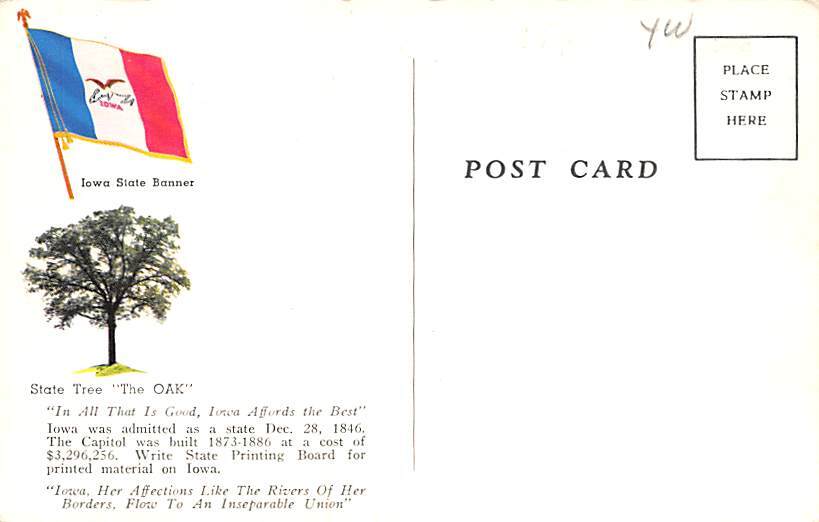 Iowa State Capitol Des Moines, Iowa Postcard - Unused Grade: 2 Size: R - Regular size: Approx 3 1/2 X 5 1/2 inch (9 cm X 14 cm) Grading Scale: Grade 1 = Perfect corners Grade 2 = Very Minimal corner wear, no c ... Read More