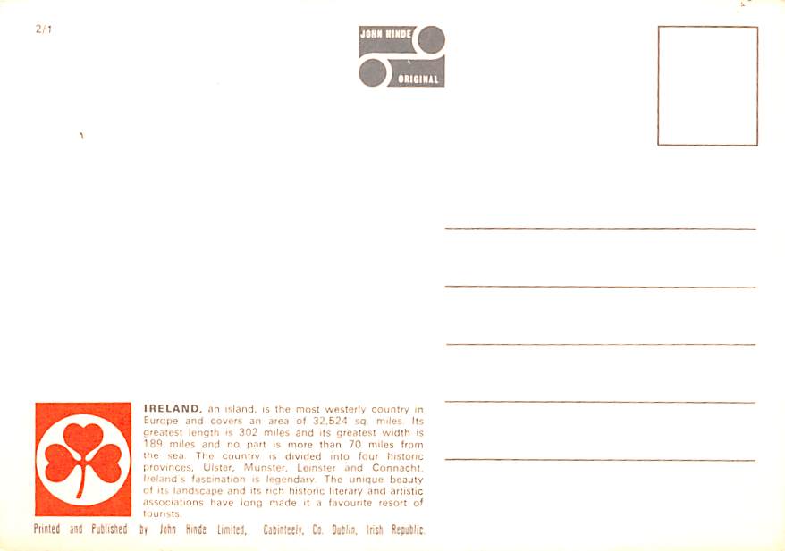 Ireland - Grade: 1 Category: Continental Size Postcard, Approx 4 in x 6 in (10 cm x 15.25 cm) Product Size: Continental size: 4X6 inches (10.5 cm x 15 cm) Grading Scale: Grade 1 = Perfect corners Grade 2 = Very ... Read More