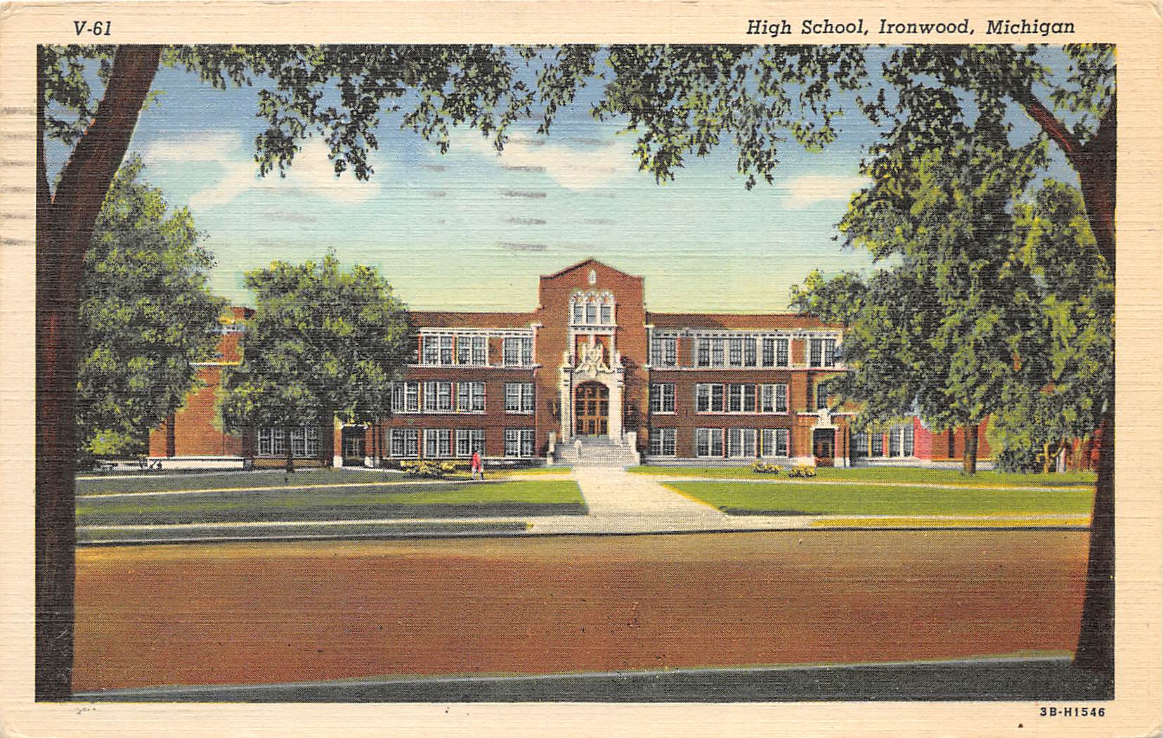 Ironwood Michigan 1945 Postcard High School