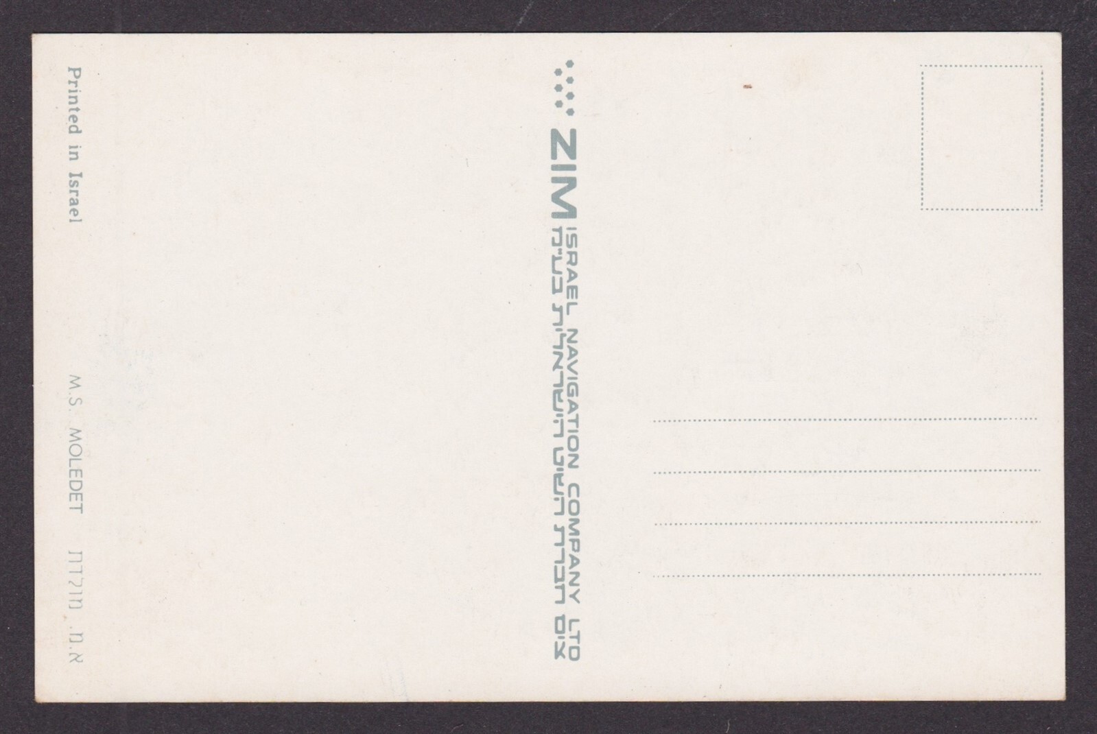 ISRAEL, Vintage postcard, M.S. Moledet, Unposted