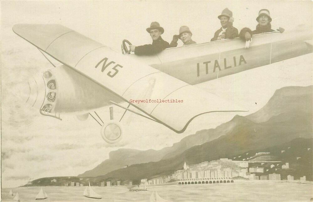 Real Photo Postcard Italy, Airplane Italia, Exaggeration, RPPC Postmark: None Image: Sharp and clear Corners: Light wear Faults/Other: Felt on back