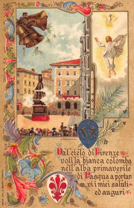 Italy Firenze Florence Easter Religious Bells Flowers Embossed postcard Published with xdm.it software