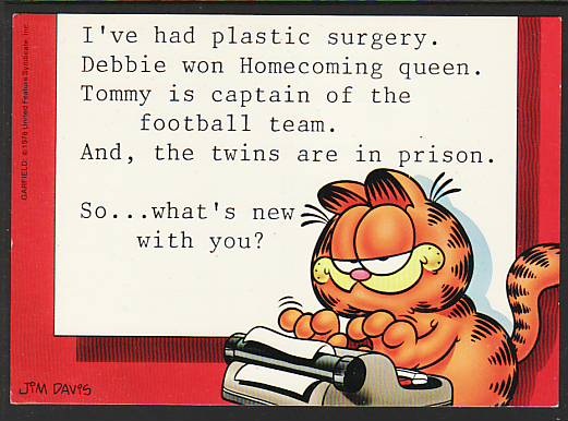 I've had Plastic .... Garfield the Cat Davis Post Card 5420