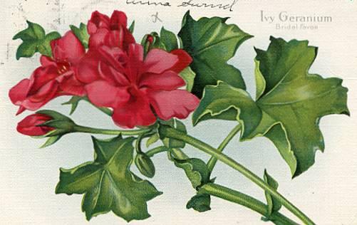 Ivy Geranium, Bridal Favor VG, PU, DB, WOF, WOB, PM 1913 Grading of Postcards MINT (M): Perfect condition, no apparent blemishes, flaws, postally unused, may have some writing on back. NEAR MINT (NM): Like new, i ... Read More