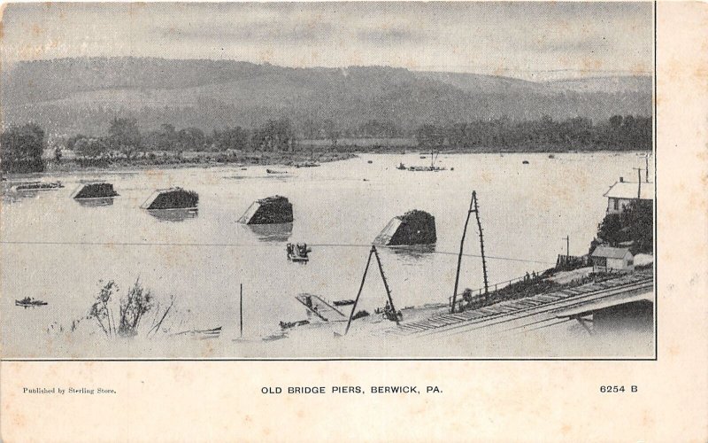 J29/ Berwick Pennsylvania Postcard c1910 Old Bridge Piers River 342
