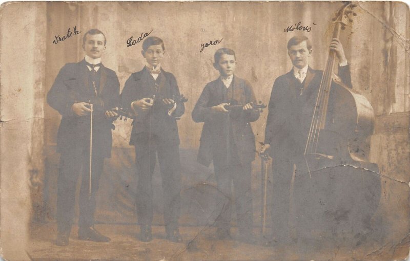 J32/ Interesting RPPC Postcard c1910 Cello Band Instruments Musicians 305