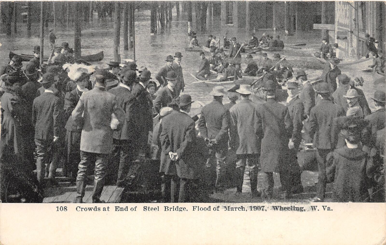 J42/ Wheeling West Virginia Postcard c1907 Flood Disaster Steel Bridge Boats 124