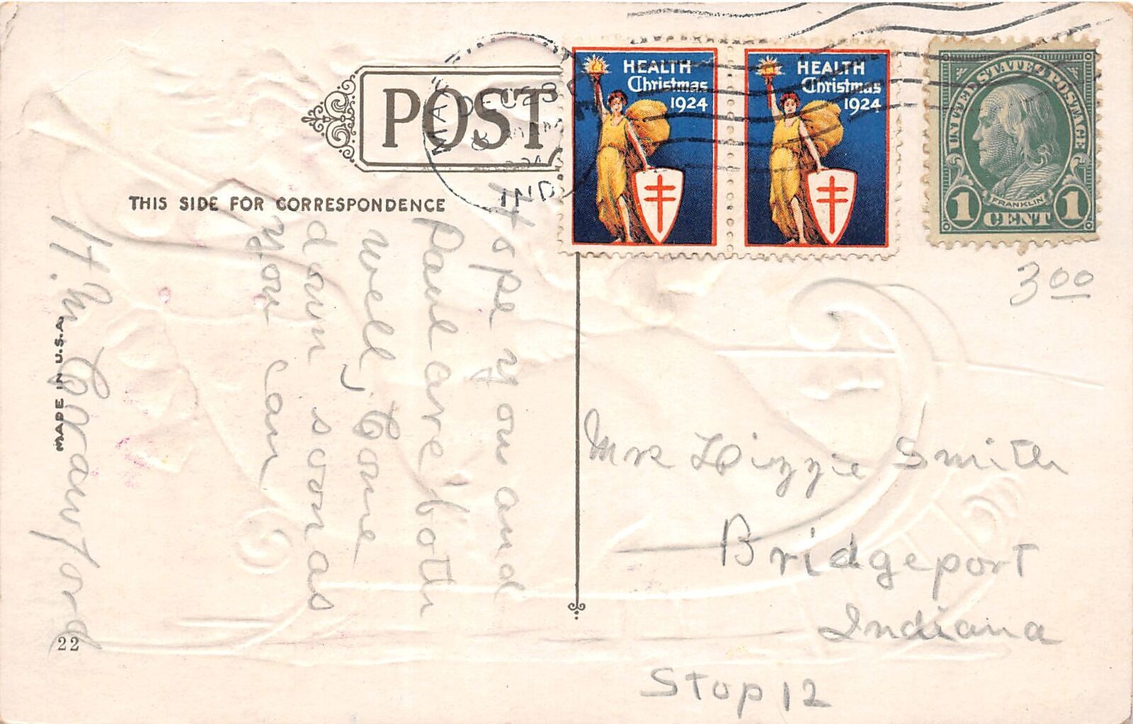 J48/ Santa Claus Merry Christmas Postcard c1910 Sleigh 06