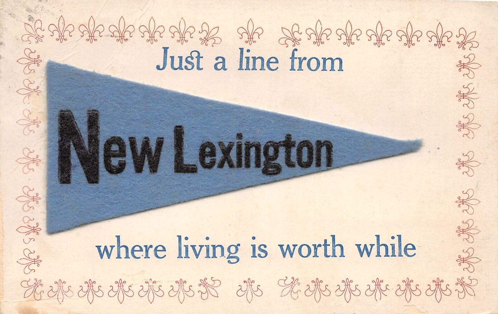 J50/ New Lexington Ohio Felt Pennant Postcard c1910 Just A Line 111