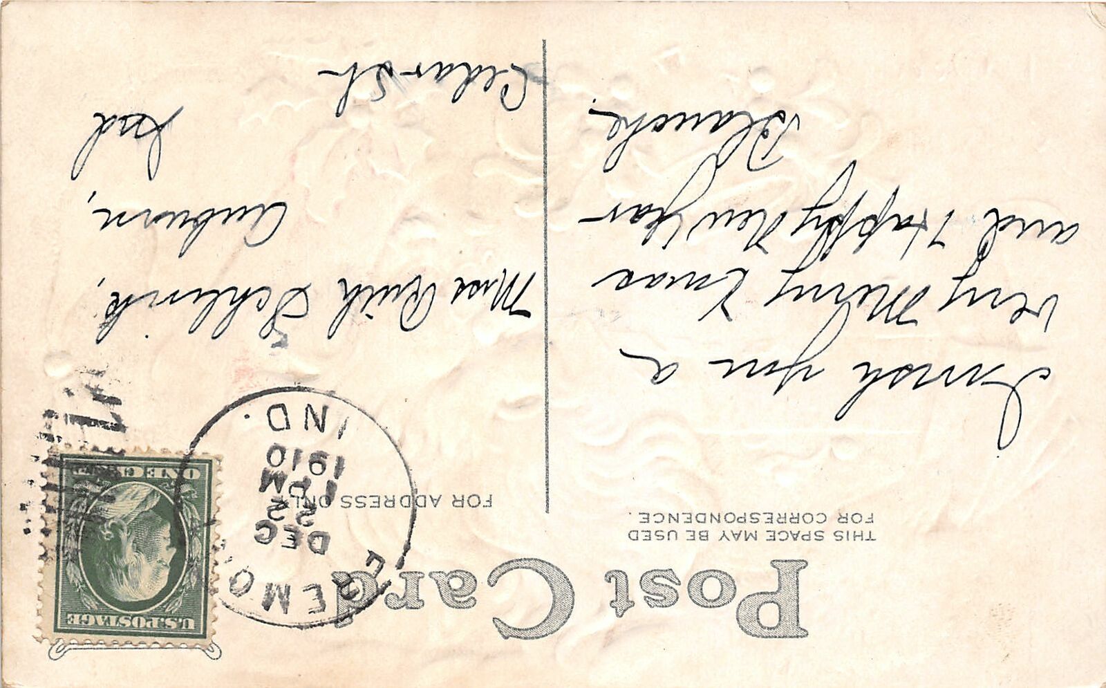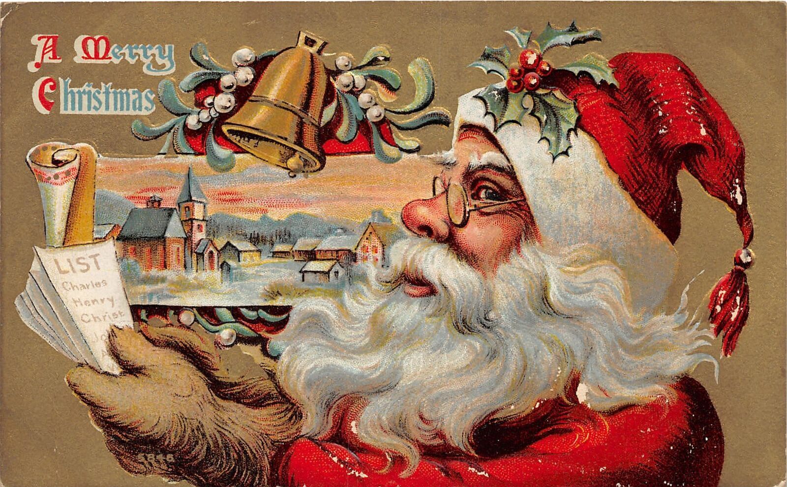 J6/ Santa Claus Christmas Postcard c1910 List Bells Spectacles 67