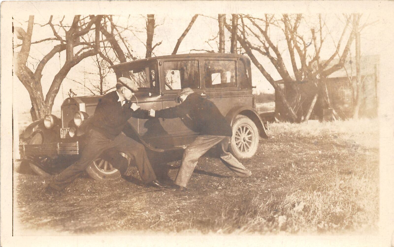 J65/ Interesting RPPC Postcard c1910 Early Automobile Men Boxing 103