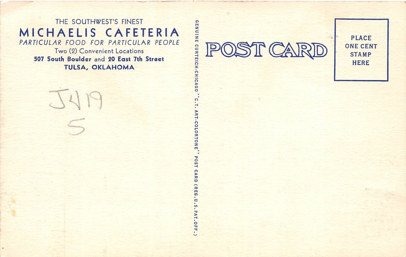 J7/ Tulsa Oklahoma Postcard Linen Interior Michaelis Cafeteria 211