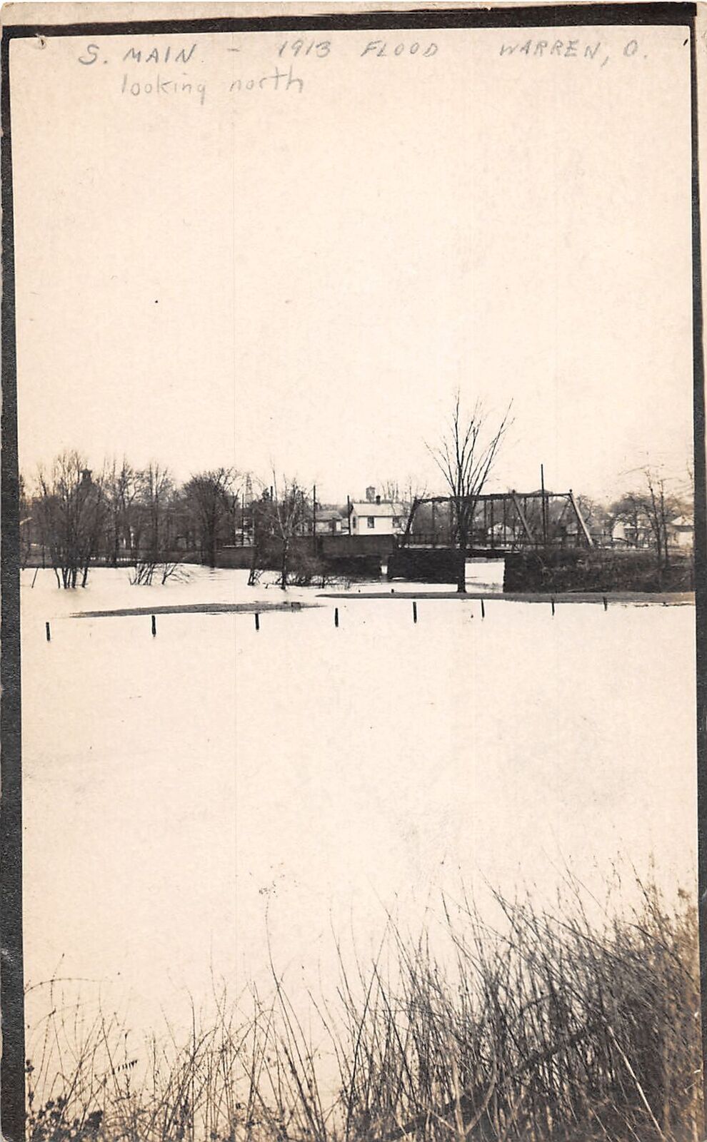 J70/ Warren Ohio RPPC Postcard c1913 Flood Disaster Main St Bridge278