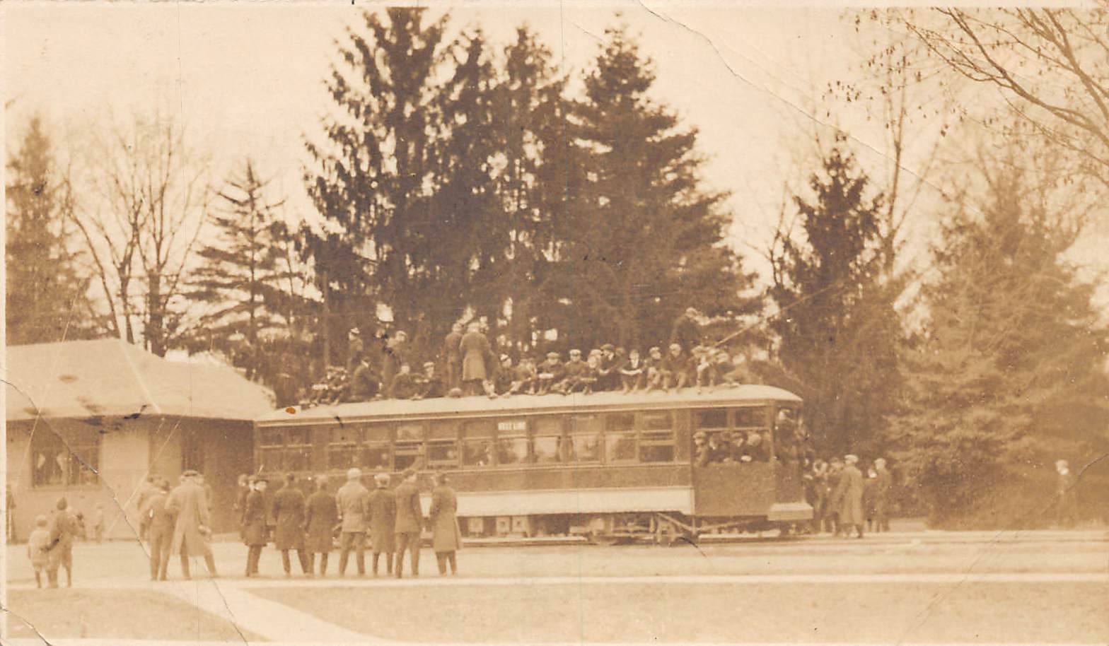J85/ Interesting RPPC Postcard c1910 Trolley Interurban Depot People 486