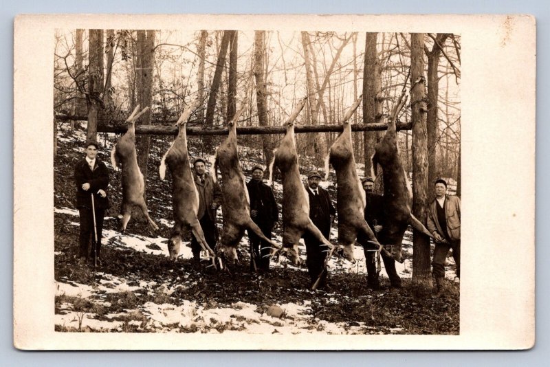 J87/ Interesting RPPC Postcard c1910 Deer Hunting Trophy Men Rifles 469