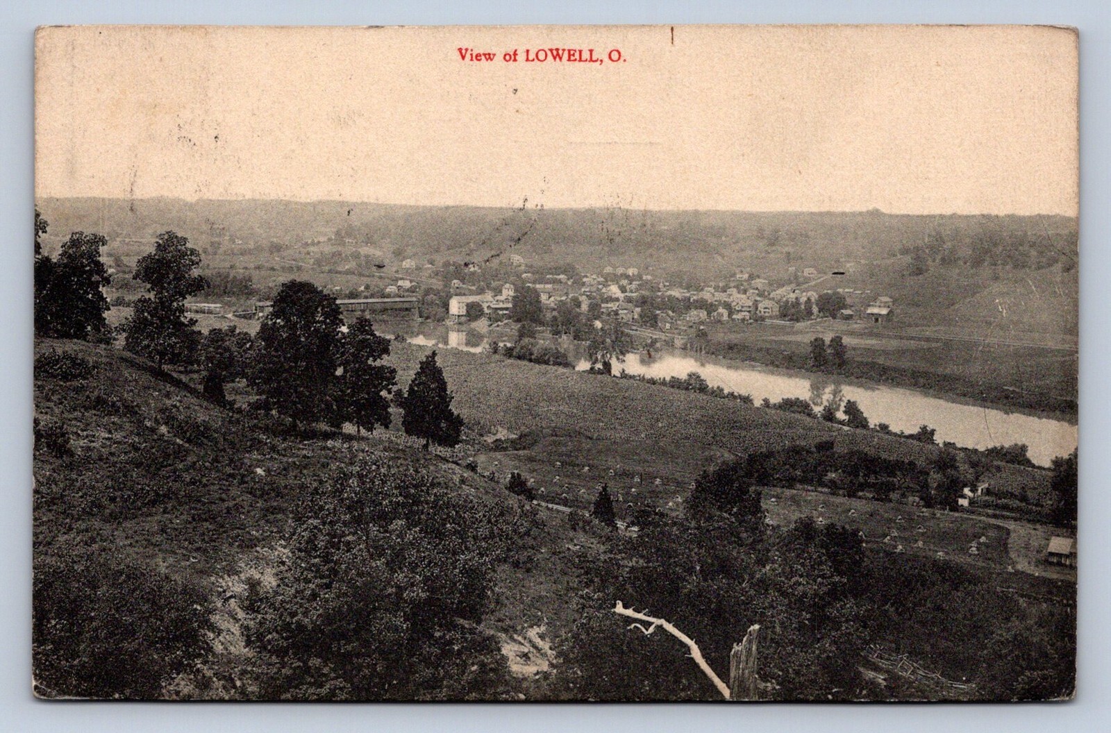J87/ Lowell Ohio Postcard c1910 Washington County Birdseye River712