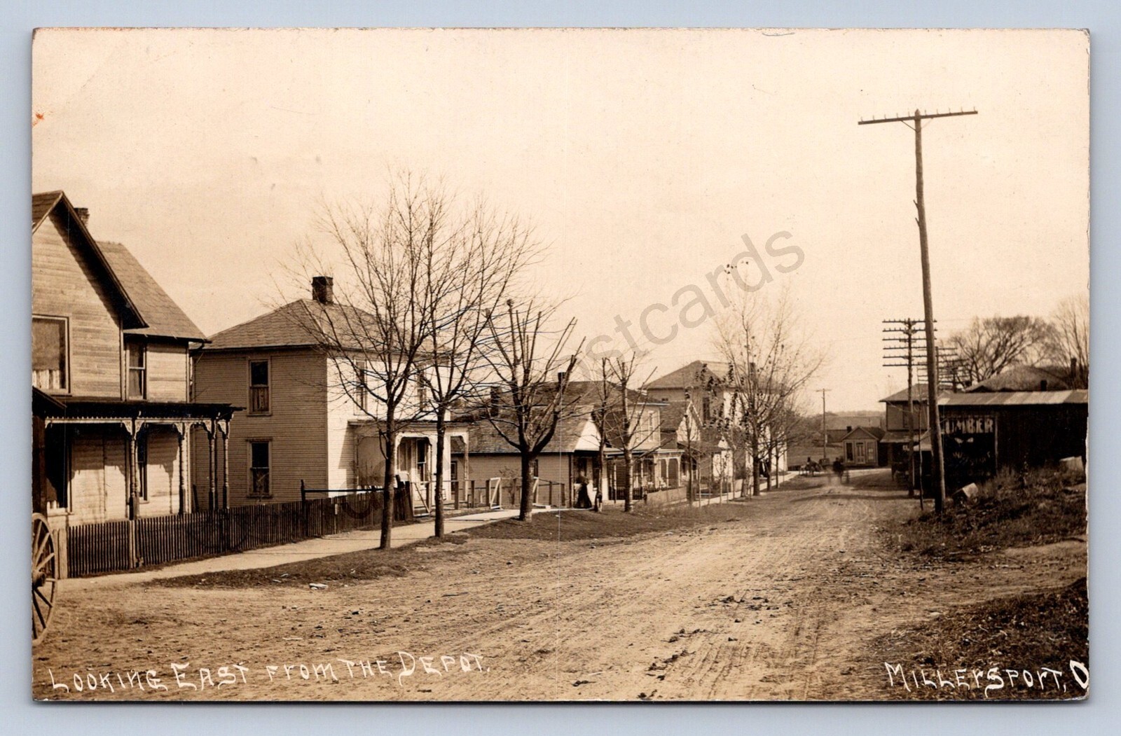 J87/ Millersport Ohio RPPC Postcard c1910 Main St Depot Homes Store 607