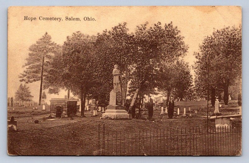 J87/ Salem Ohio Postcard c1910 Hope Cemetery Graves Monuments 1966