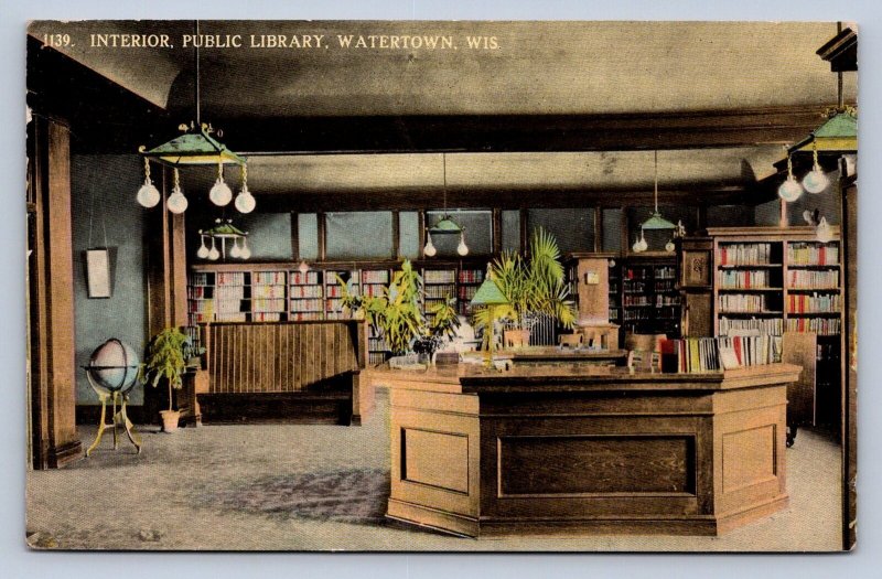 J90/ Watertown Wisconsin Postcard c1910 Interior Public Library 533