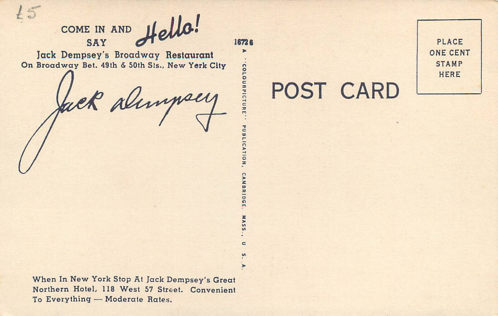 Jack Dempsey knocks out Jess Willard by James Montgomery Flagg restaurant ad.