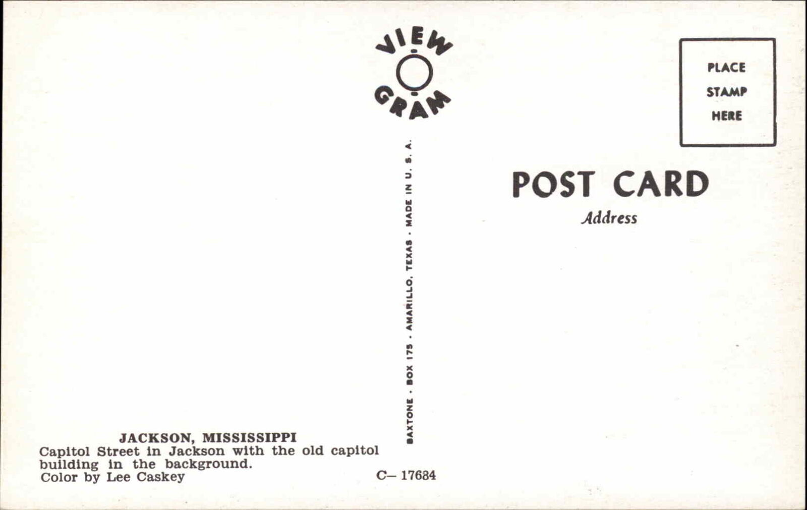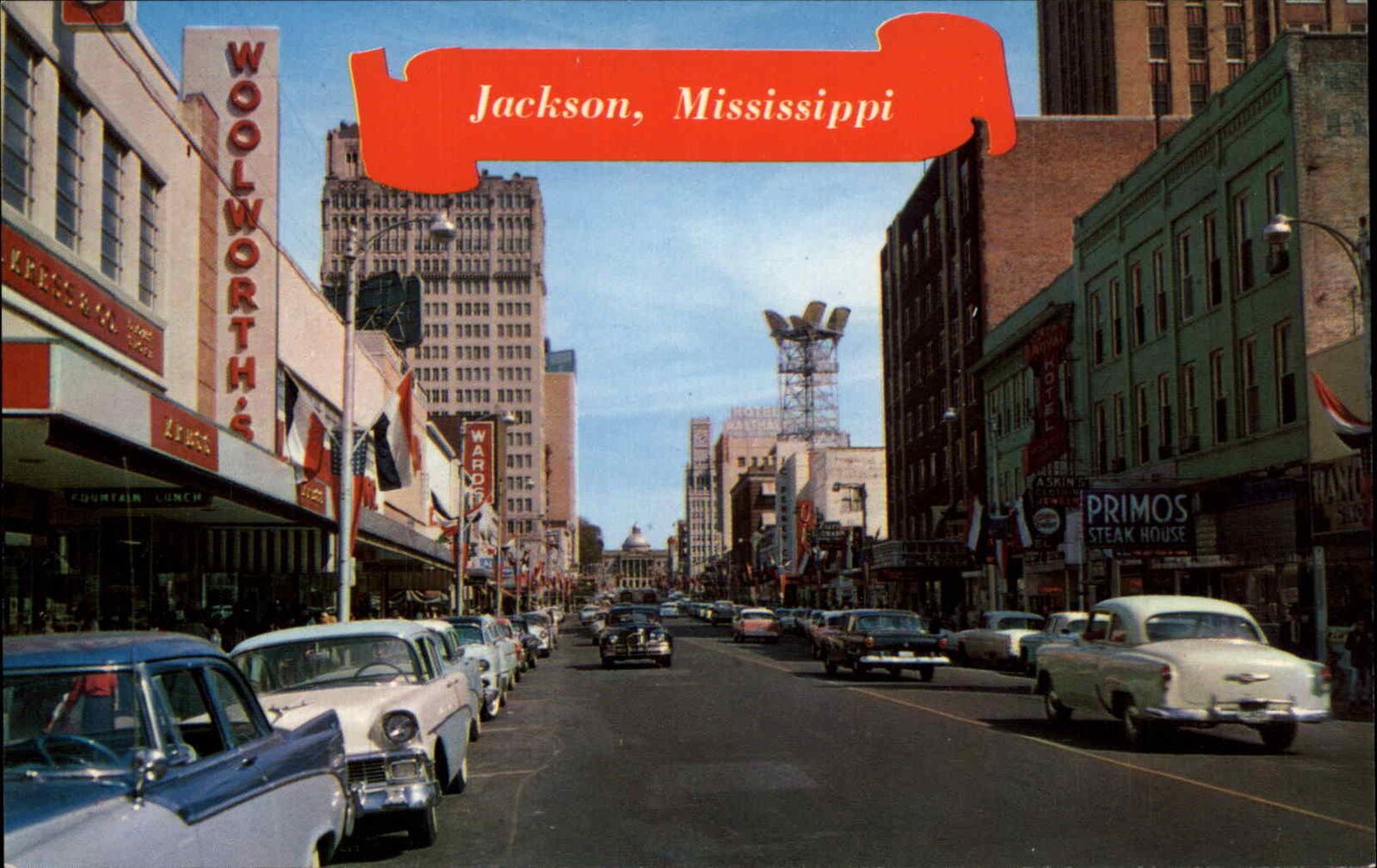 Jackson Mississippi MS Street Scene Cars Visible Signs 1950s-60s Postcard