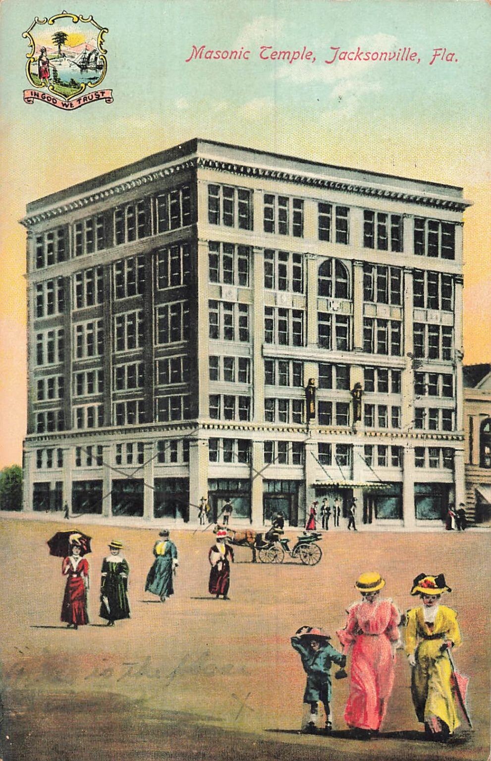 Jacksonville Florida FL~Masonic Temple~1909 M Mark Postcard