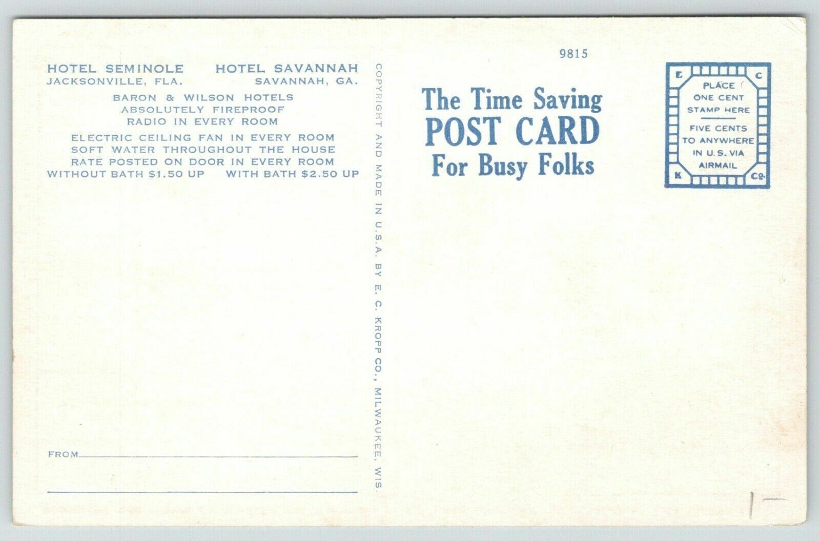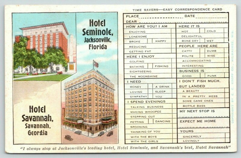 Jacksonville FL~Savannah GA~Fireproof Hotels~Busy Persons Correspondence c1930