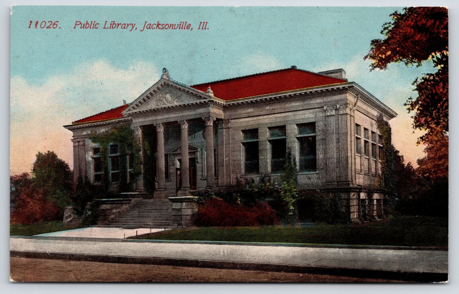 Jacksonville Illinois~Carnegie Public Library on West College~c1910 Acmegraph PC