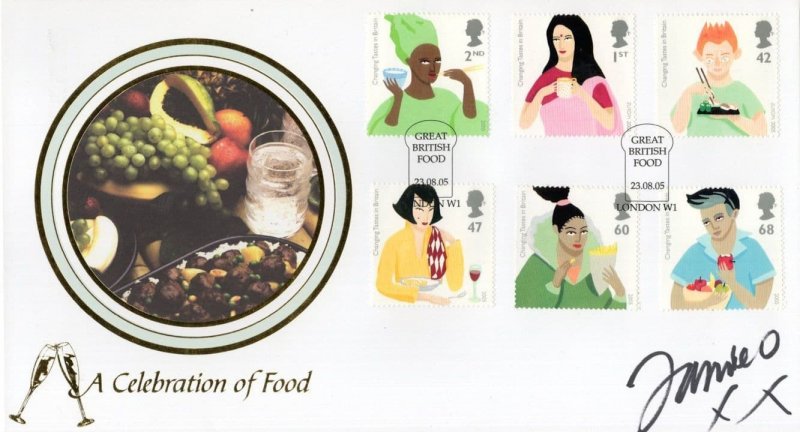 STB034 This is stunning food collectors official limited Buckingham first day cover hand signed by celebrity chef Jamie Oliver where the signature rests perfectly accompanying the special hand commemorative franks. ... Read More
