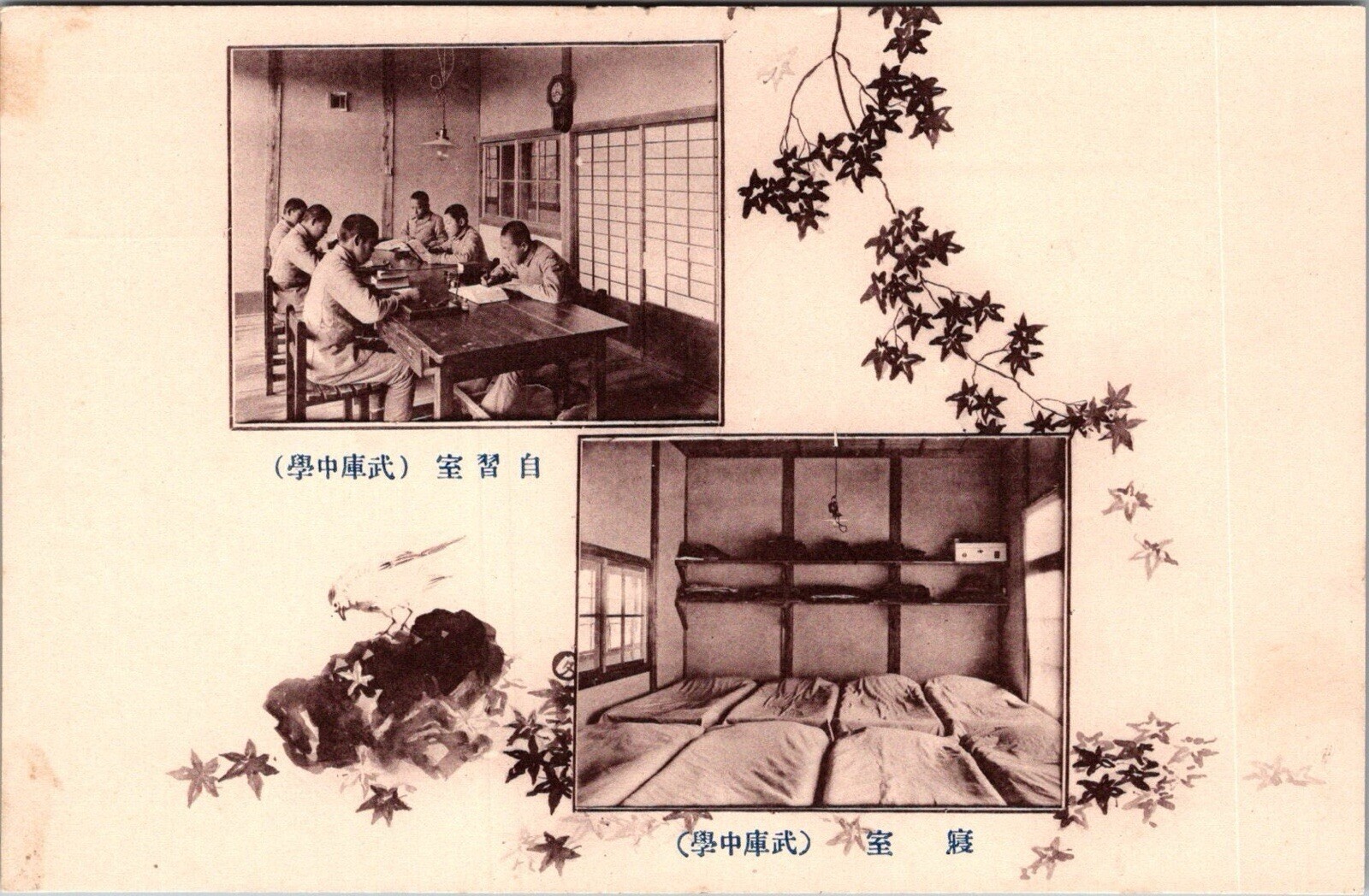 JAPAN Antique Postcard Multi View Classroom Sleeping Quarters Dormitory JG8