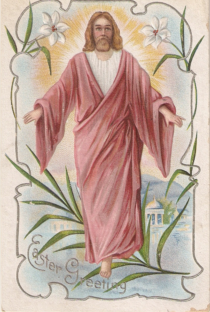 "resus risen. Blessing" vintage american religious postvard Publisher: NOT MENTIONED Artist: : NOT CREDITED Condition: Divided. Written on back and posted on March 24 1913. One cent USA stamp affixed. Good c ... Read More